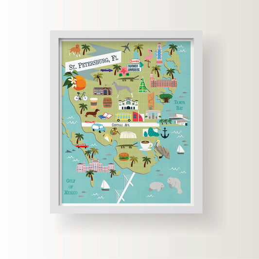 St. Pete Map Art – 8x10 Illustrated Florida Print