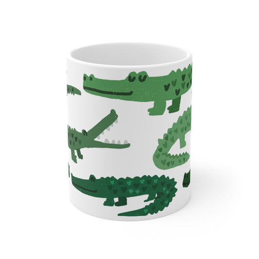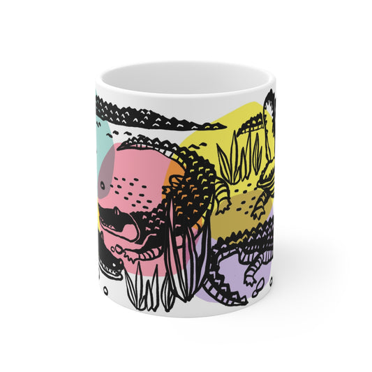 Alligator Ceramic Mug – Colorful Retro-Style Swamp Illustration